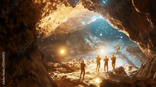 The watermark will not be included on Wall mural.: Astronauts explore luminous cave system discovering hidden wonders