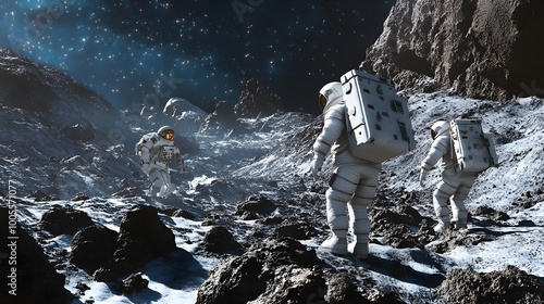 The watermark will not be included on Wall mural.: Astronauts exploring an asteroid 3d rendering -