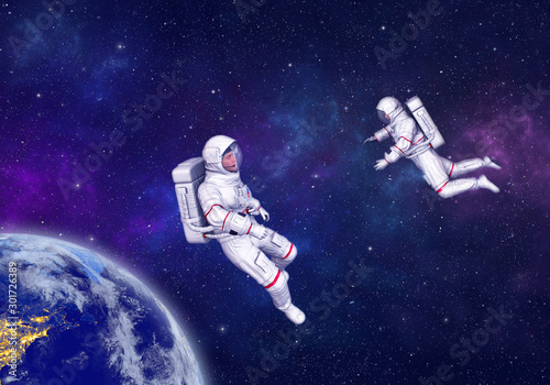 Wall mural astronauts floating and exploring in deep space above planet earth. elements of this image furnished - Wall murals Wall mural astronauts floating and exploring in deep space above planet earth. elements of this image furnished - Wall murals