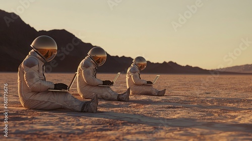 Wall mural astronauts with laptops on mars generative ai - Wall murals Wall mural astronauts with laptops on mars generative ai - Wall murals