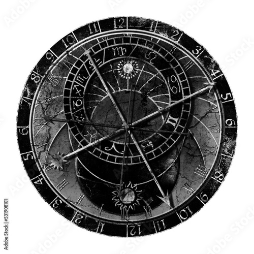 The watermark will not be included on Wall mural.: Astronomical clock in grunge style isolated on transparent background