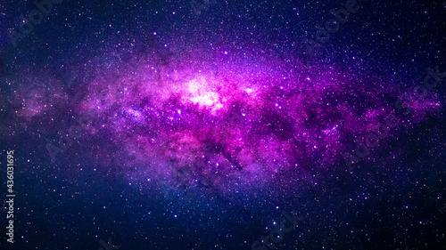 Wall mural astrophotography of visible milky way galaxy. stars, space, nebula and stardust at a starry night sk
