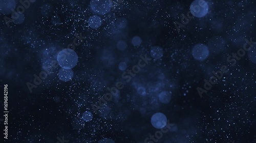 Wall mural atmospheric blue abstract background with glittering shiny particles and shimmering bokeh light sphe