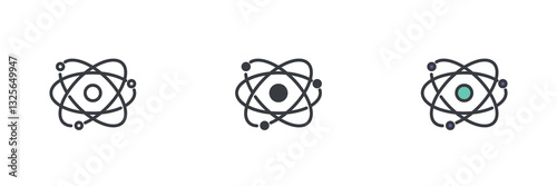 Wall mural : Atom, with a central nucleus and orbiting different style icon set