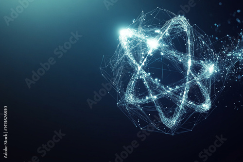 Wall mural atom sign abstract low poly wireframe style. abstract geometric background. wireframe light structur - Wall murals Wall mural atom sign abstract low poly wireframe style. abstract geometric background. wireframe light structur - Wall murals