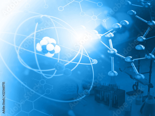 The watermark will not be included on Wall mural.: Atom with molecules - abstract science background - 3d illustration -