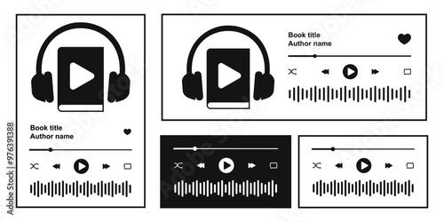 Audiobook app template with progress slider bar, equalizer sound wave and buttons - interface of audiWall mural