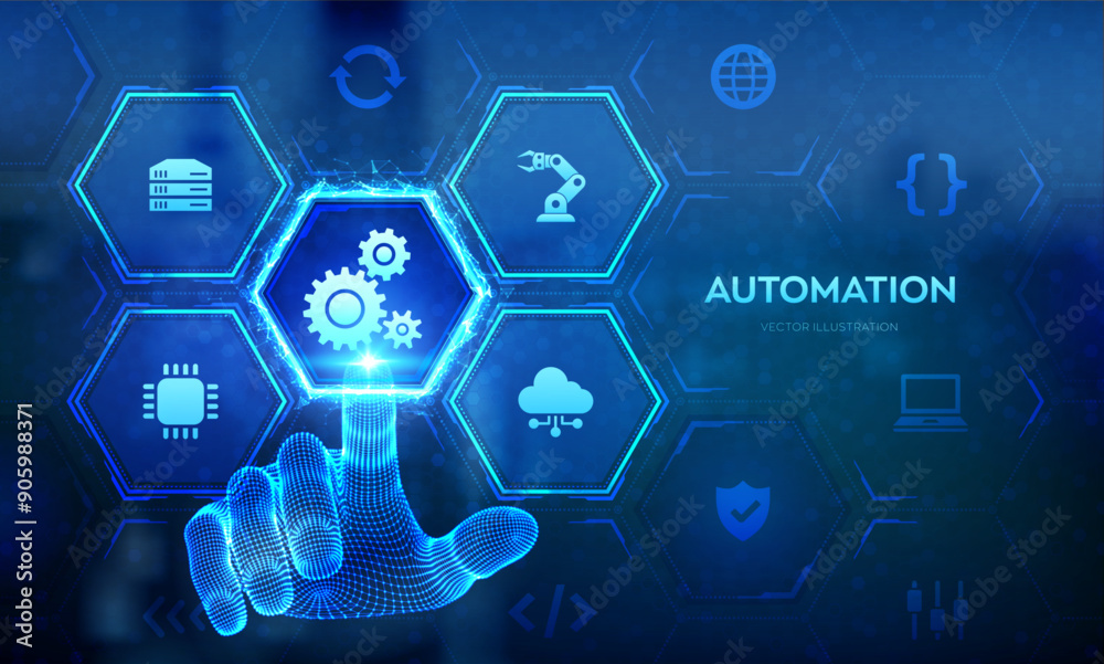 Wall mural automation software. iot and automation concept as an innovation, improving productivity in technolo