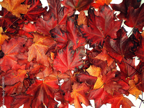 Wall mural autumn background forest with maple trees and sunny beams - Wall murals Wall mural autumn background forest with maple trees and sunny beams - Wall murals