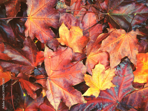 Wall mural autumn background forest with maple trees and sunny beams - Wall murals Wall mural autumn background forest with maple trees and sunny beams - Wall murals