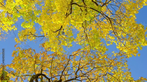 The watermark will not be included on Wall mural.: Autumn colorful leaves on the branches of a maple sway in the wind