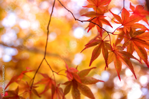 Wall mural autumn japanese maple tree background with copyspace 紅葉したもみじの背景 コピースペース