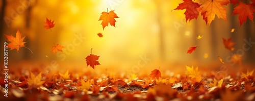 The watermark will not be included on Wall mural.: Autumn leaves fall in a colorful background banner with golden hues and intricate patterns -