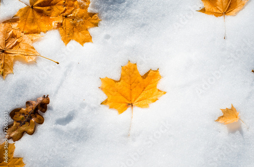 Wall mural autumn leaves in the snow - Wall murals Wall mural autumn leaves in the snow - Wall murals