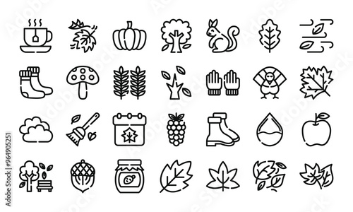 The watermark will not be included on Wall mural.: Autumn outline icon set - vector illustration