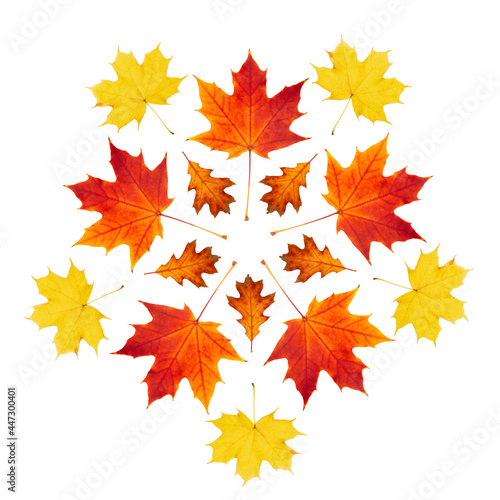 Wall mural autumn pattern for design. autumn leaves on a white background. dry leaves of oak and maple pattern.