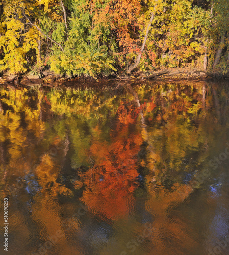 The watermark will not be included on Wall mural.: Autumn trees with reflection in river