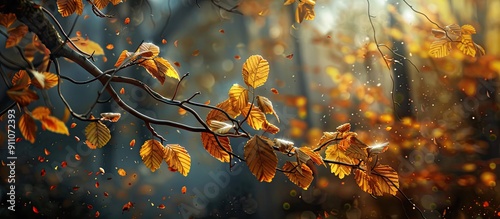 Autumnal foliage on a tree branch in the woods with a serene atmosphere and copy space imageWall mural