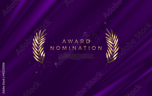 Wall mural award nomination - design template. golden branches on a purple cloth background. award sign with go - Wall murals Wall mural award nomination - design template. golden branches on a purple cloth background. award sign with go - Wall murals