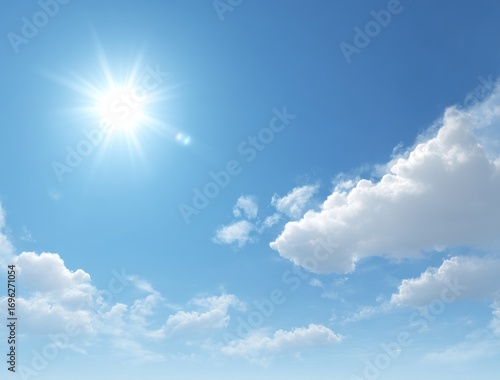 Wall mural azure sky punctuated by radiant sun and scattered cottony clouds, creating serene, airy atmosphere i - Wall murals Wall mural azure sky punctuated by radiant sun and scattered cottony clouds, creating serene, airy atmosphere i - Wall murals