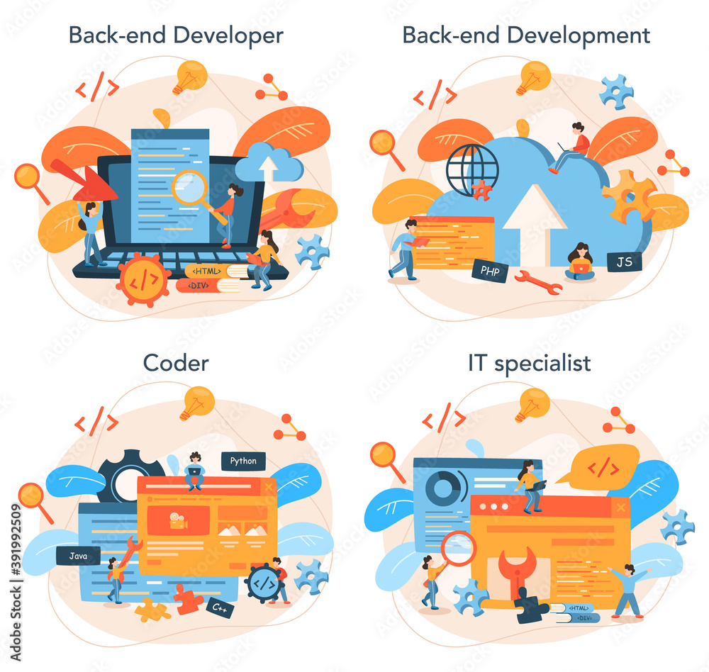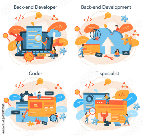 Wall mural back end development concept set. software development process. - Wall murals Wall mural back end development concept set. software development process. - Wall murals