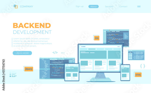 Wall mural backend development, coding, software engineering, programming languages. program code on laptop scr - Wall murals Wall mural backend development, coding, software engineering, programming languages. program code on laptop scr - Wall murals