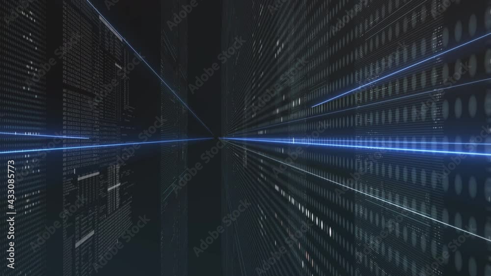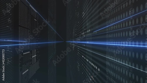 Wall mural background animation with digital data streams from a computer network, futuristic binary world