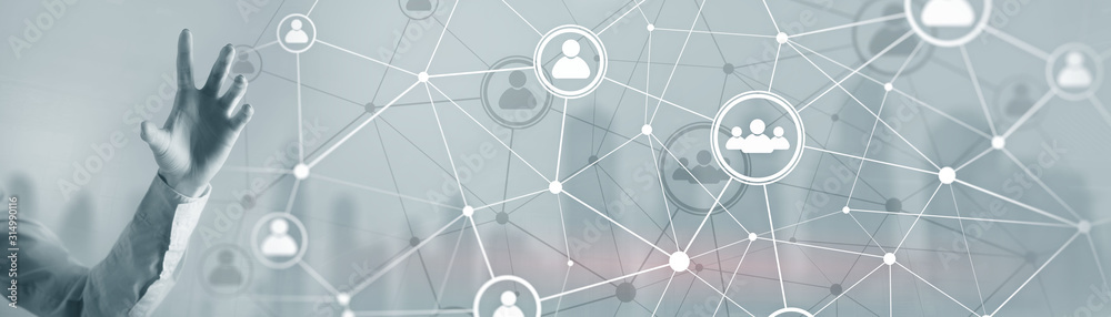 Wall mural background conceptual image with social connection lines on panoramic fone.