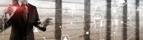 Wall mural : Background conceptual image with social connection lines on panoramic fone -