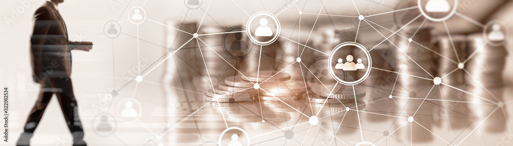 Wall mural background conceptual image with social connection lines on panoramic fone.