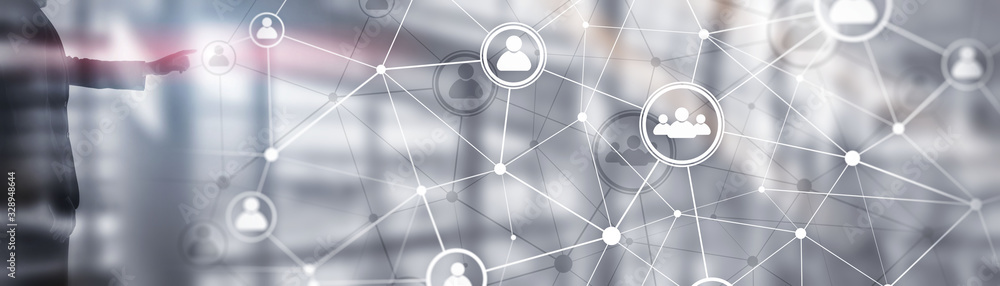 Wall mural background conceptual image with social connection lines on panoramic fone.