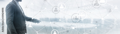 Wall mural : Background conceptual image with social connection lines on panoramic fone -