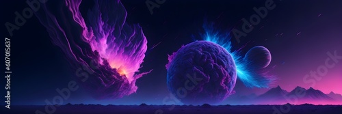 Wall mural : Background explosion collision of two planets in the sky (pink)