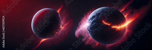 The watermark will not be included on Wall mural.: Background explosion collision of two planets in the sky (red and white)