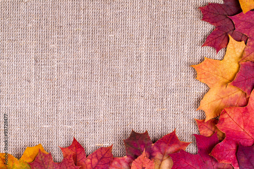 Wall mural : Background from autumn leaves of a maple on burlap
