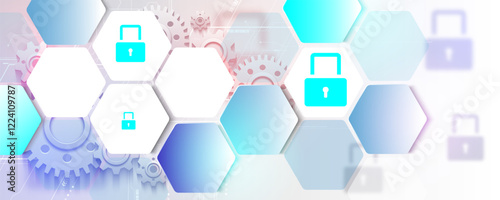 Wall mural background image of hexagonal geometric technology, cyber security protection concept and circuit bo
