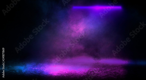 The watermark will not be included on Wall mural.: Background of empty room with spotlights and lights, abstract purple background with neon glow