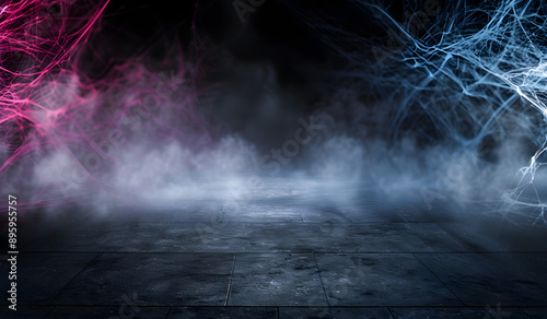 Wall mural background of empty space. dark empty background, concrete, smoke, cobweb. halloween background
