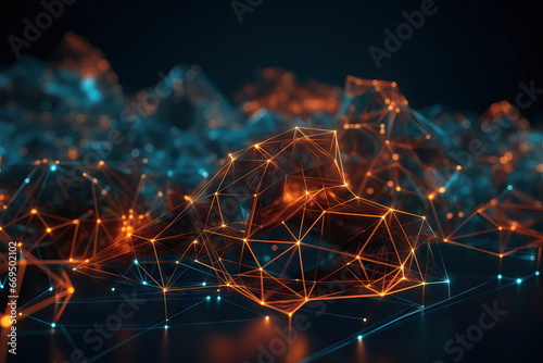 Wall mural : Background of low-poly structures with interconnected tech nodes