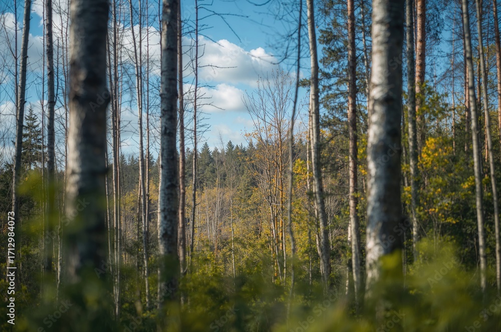 Wall mural : Background texture featuring slender trees in a summer forest setting