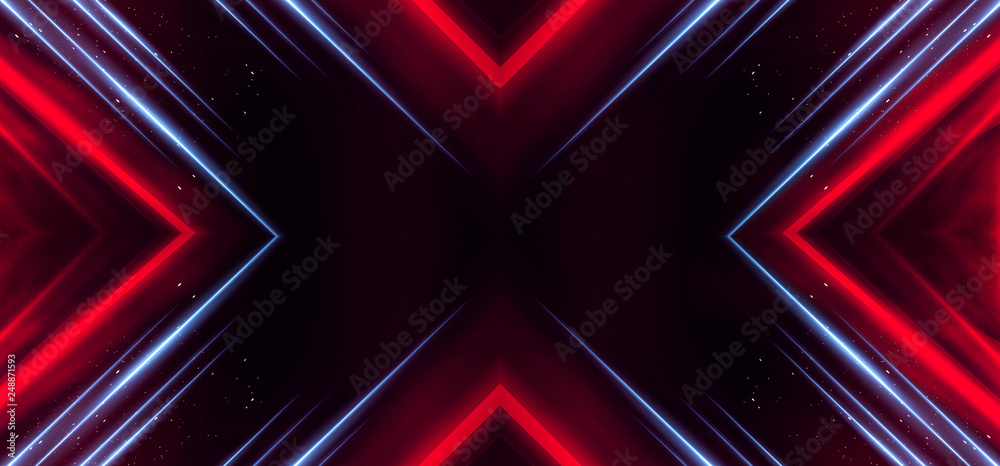 The watermark will not be included on Wall mural.: Background wall with neon lines and rays - background of an empty dark corridor with neon light - abst