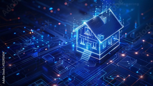 The watermark will not be included on Wall mural.: Background with abstract light elements and outlines of a house on a technology diagram - useful for