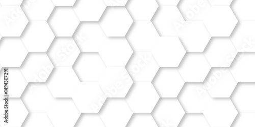 Wall mural background with white lines hexagonal structure futuristic white background and embossed hexagon , h
