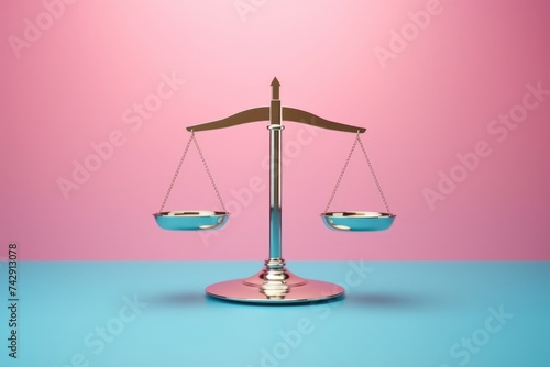 Wall mural balanced scale on a soft-hued backdrop. elegant balance scale on pastel background