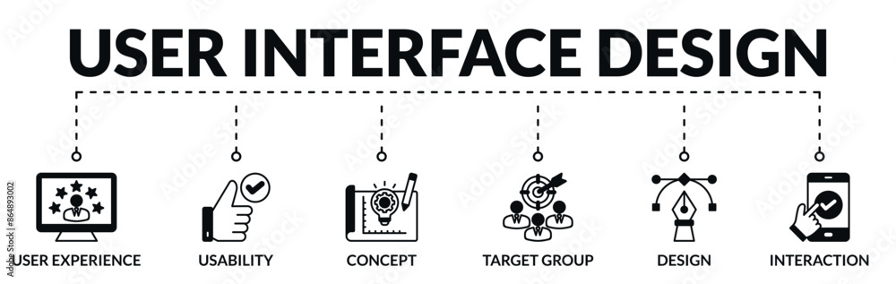 Wall mural banner of user interface design web vector illustration concept with icons of user experience, usabi - Wall murals Wall mural banner of user interface design web vector illustration concept with icons of user experience, usabi - Wall murals