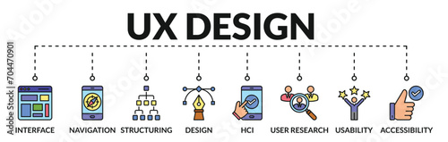Wall mural banner of ux design web vector illustration concept with icons of interface, navigation, structuring - Wall murals Wall mural banner of ux design web vector illustration concept with icons of interface, navigation, structuring - Wall murals