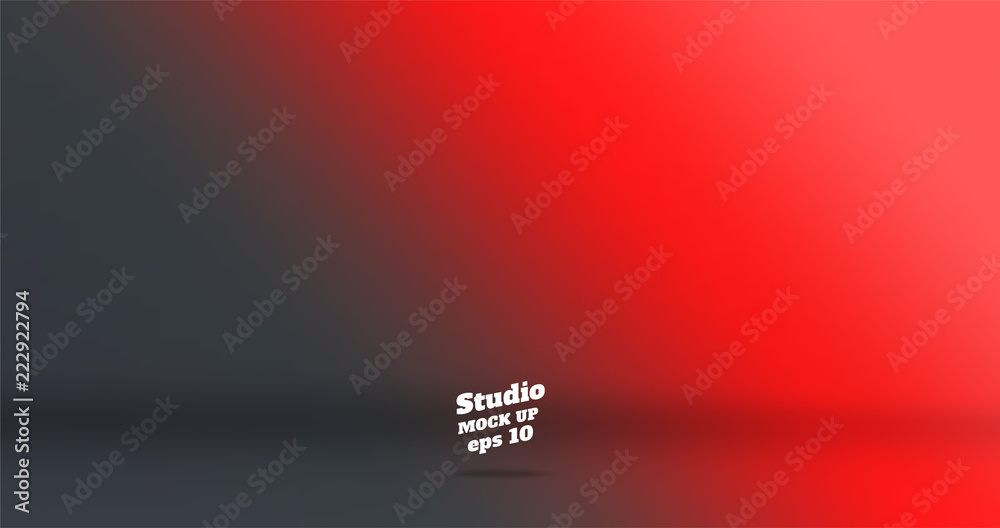The watermark will not be included on Wall mural.: Banner vector abstract background of empty two tone gradient red to dark grey studio room,template m