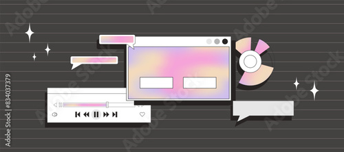The watermark will not be included on Wall mural.: Banner with hearts - retro computer interface aesthetics - background with browser elements in y2k sty