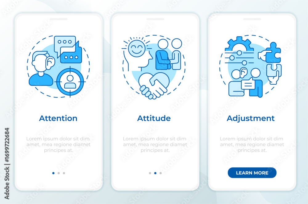Wall mural : Basic listening skills blue onboarding mobile app screen - walkthrough 3 steps editable graphic instr