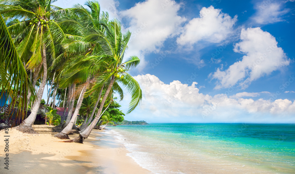 Wall mural beach and coconut palm trees. koh samui, thailand